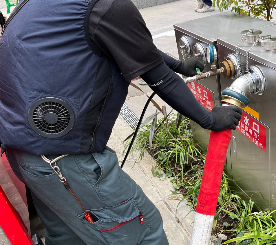 これは、実際にはほとんど使用することがない屋内消火栓・屋外消火栓・連結送水管用のホースは、年月が経つと知らないうちに劣化していることがあります。実際の放水圧をかけると端末部から水が漏れる可能性があり、いざというときの消火活動に支障が出る場合があるからです。