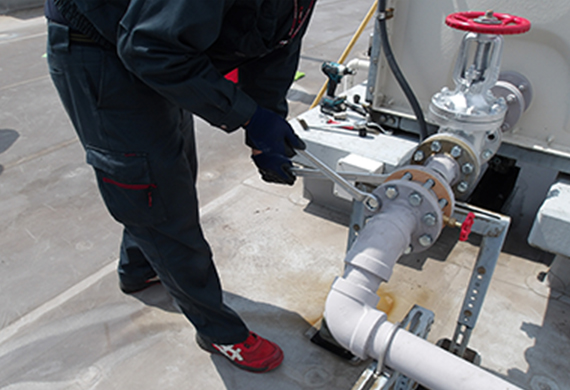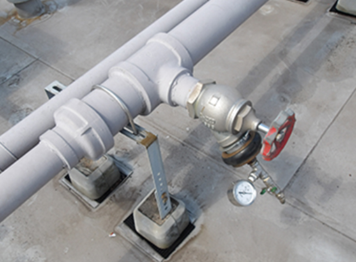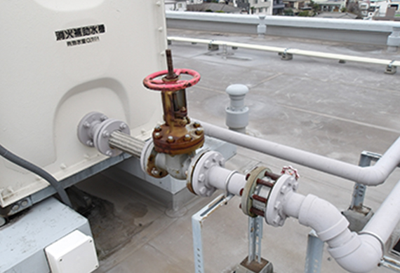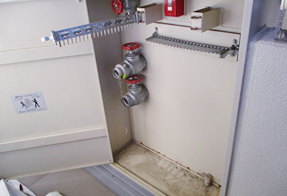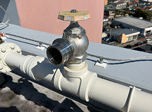 消防活動上必要な施設である連結送水管は、建物の竣工時に放水試験及び耐圧試験を実施していますが、その後の経年変化により配管及び弁類等の一部に腐食等が進み、欠陥が生じているにもかかわらず、その実態が把握できない状況下にあります。 このため、火災時に消防隊が連結送水管を使用した際、漏水事故が発生し、本来の機能が維持できなかったケースが多くなってきています。平成14年7月1日施行の消防用設備点検基準の改正に伴い、連結送水管設備を設置して10年を経過(以後3年ごと)したものについては、配管の「耐圧性能」を点検し、消防署へ報告することが義務づけられています。